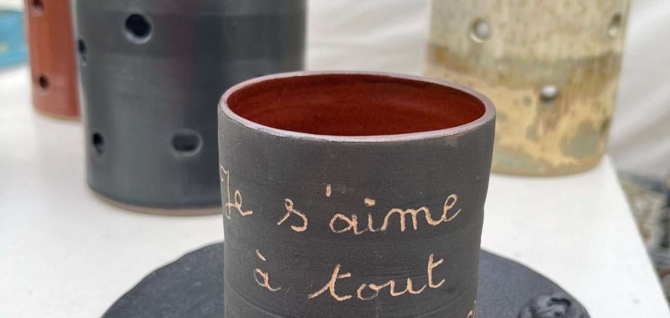 Cuisson haute température. Travail au tour et principalement à la plaque pour des pièces uniques. Inspirations mythologiques et philosophiques qui donnent du sens aux nombreuses empreintes déposées sur la terre…