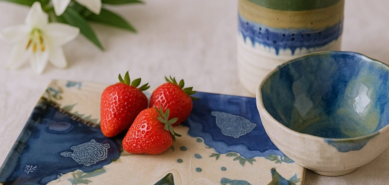 Art de la table. Objets utilitaires et décoratifs en terre de grès, décorée et émaillée.