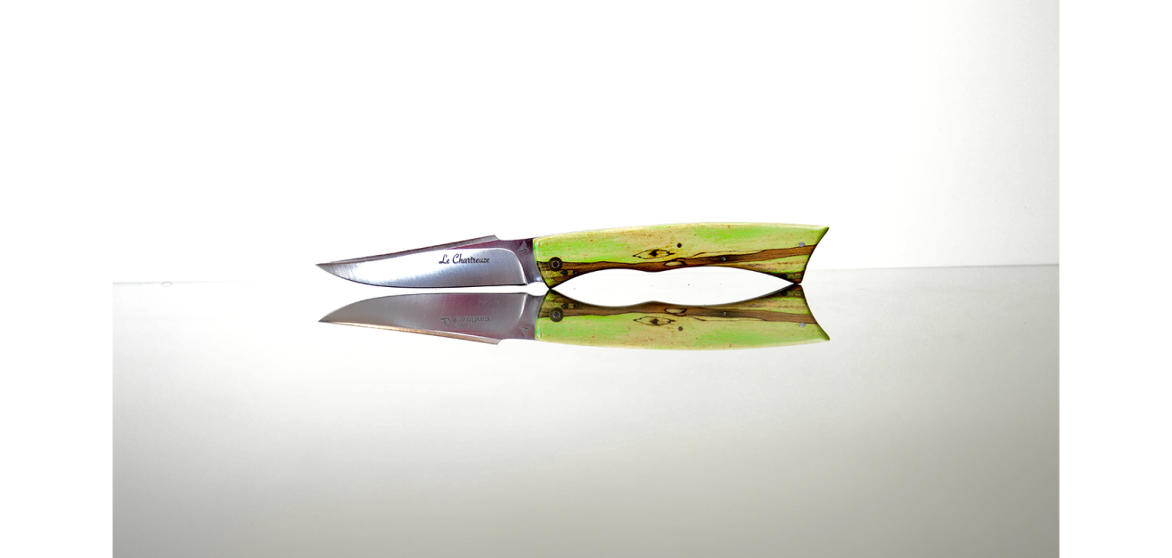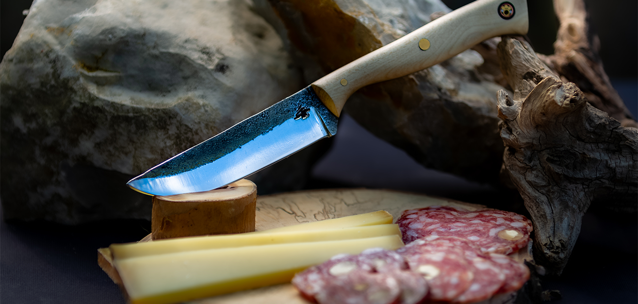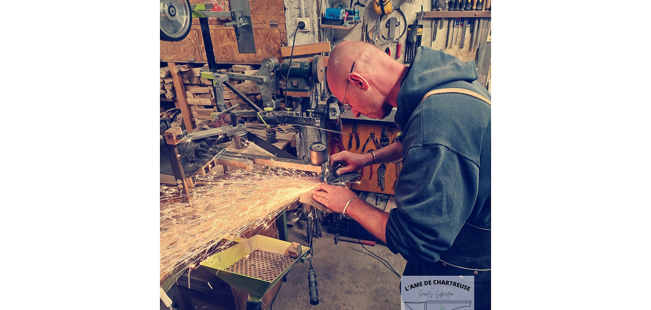 Réalisation de couteaux, les lames sont forgées à la main et les manches sont réalisés dans des bois qui proviennent du massif de la Chartreuse ou issu de recyclage.
