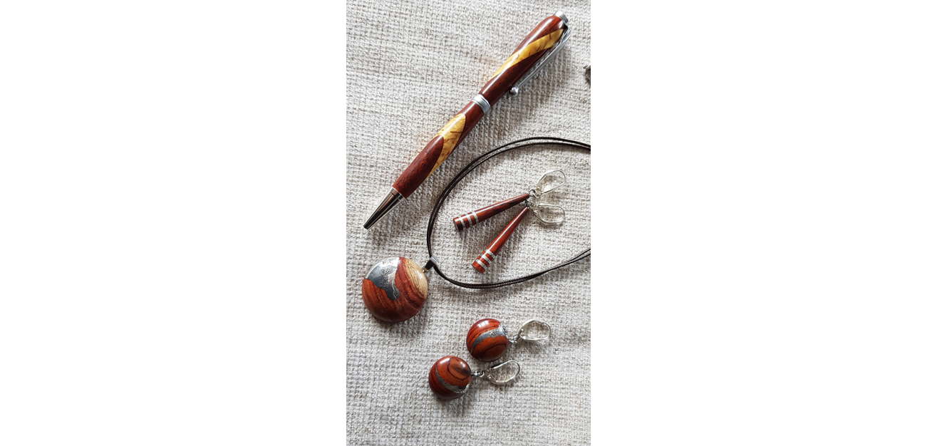 Fabrication de bijoux et objets en bois tournés incrustés d’étain