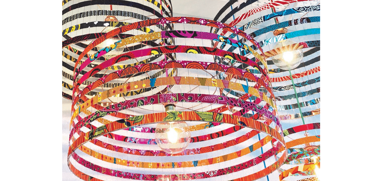 Création de luminaires en rayures de wax tissées à travers un grillage de cuivre
